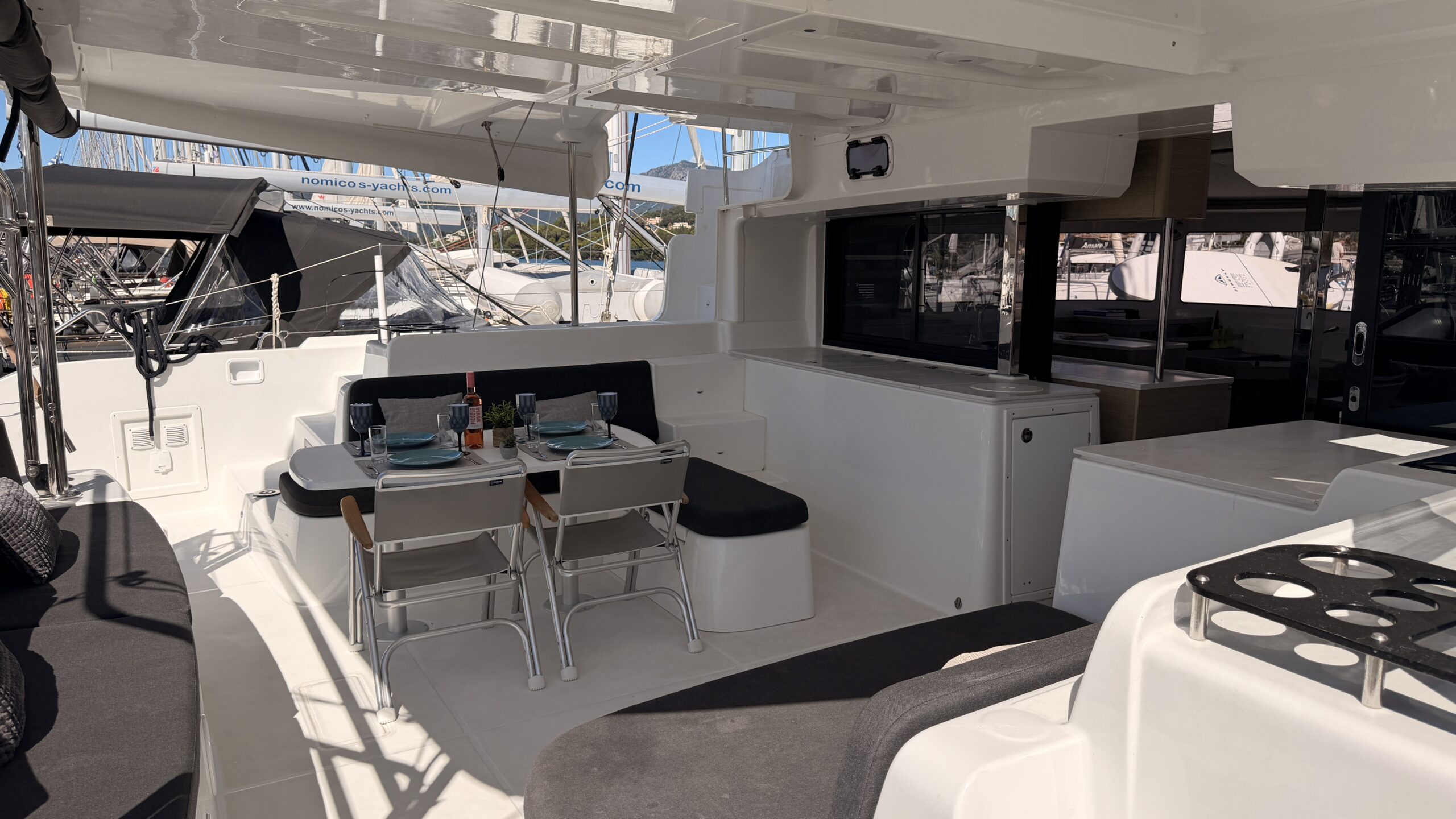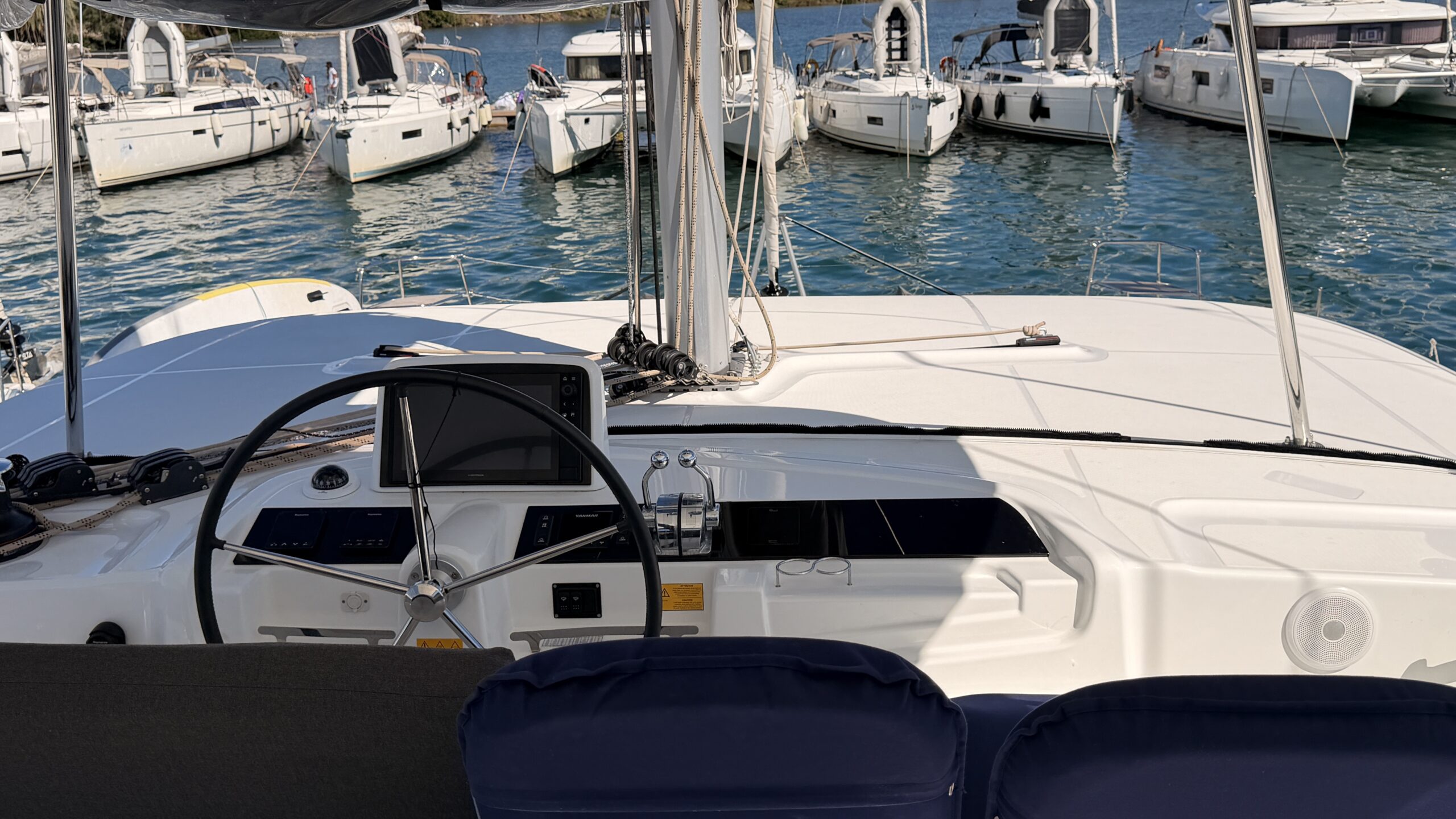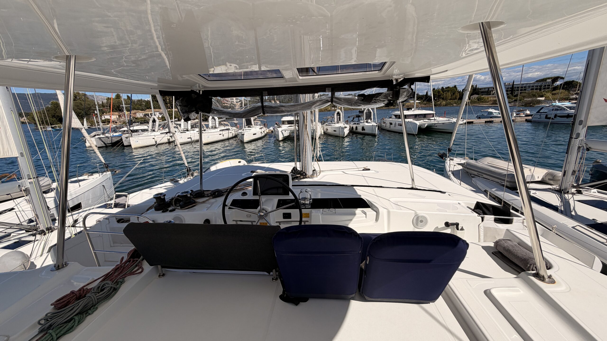 This Lagoon 46 is a 4 cabin catamaran built in 2025 and she is docked in D-Marin Marina Gouvia, Greece.