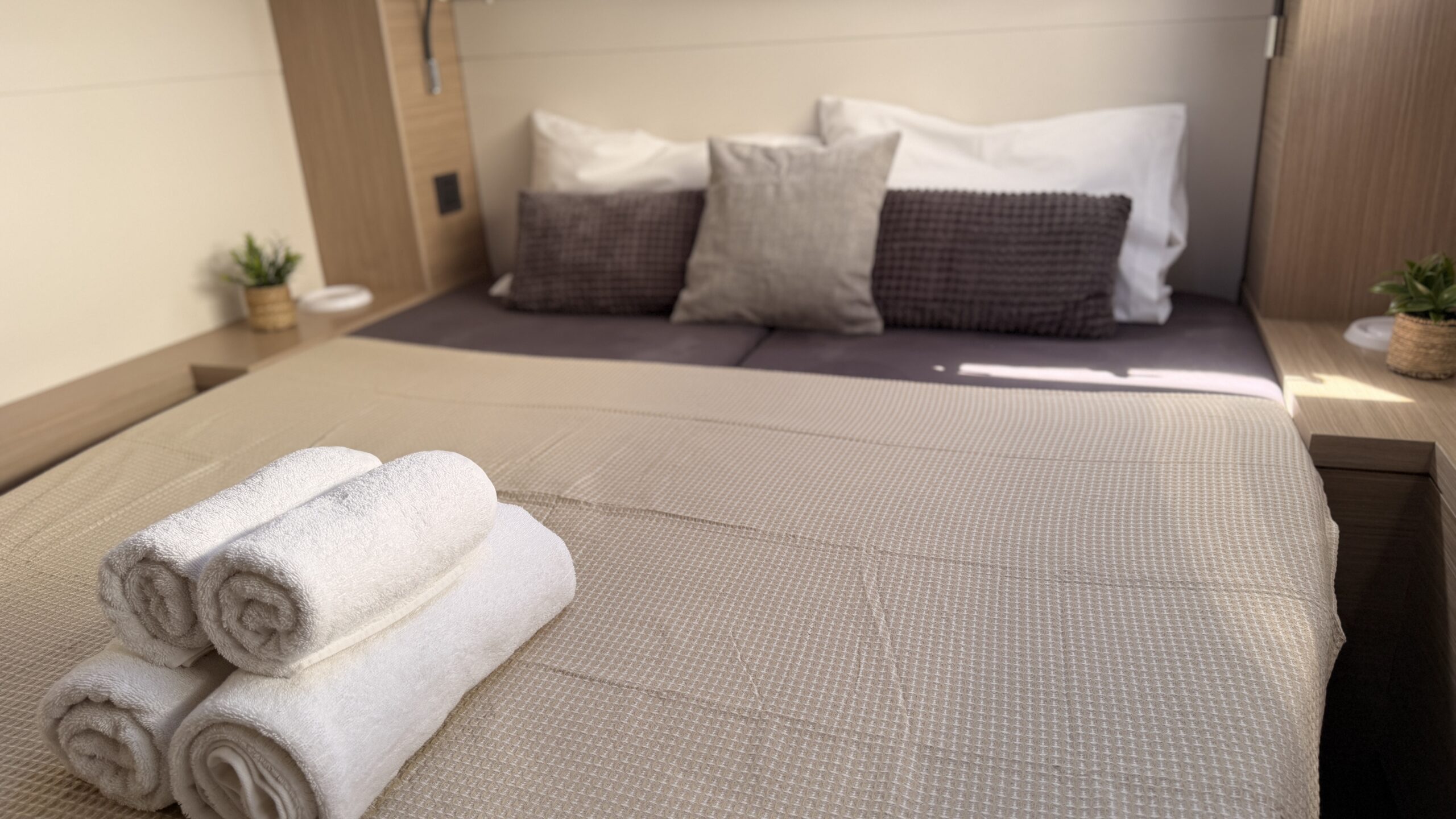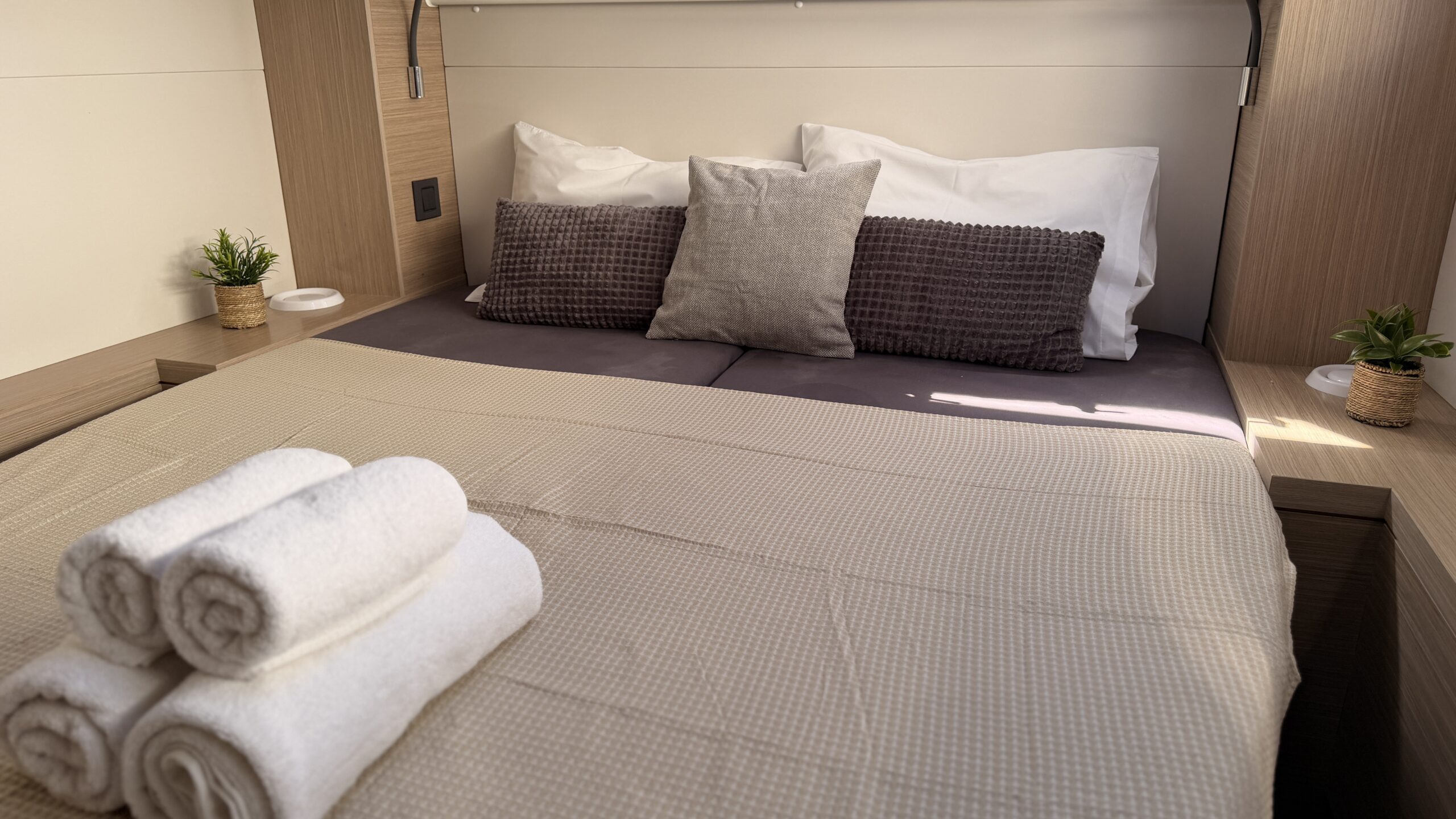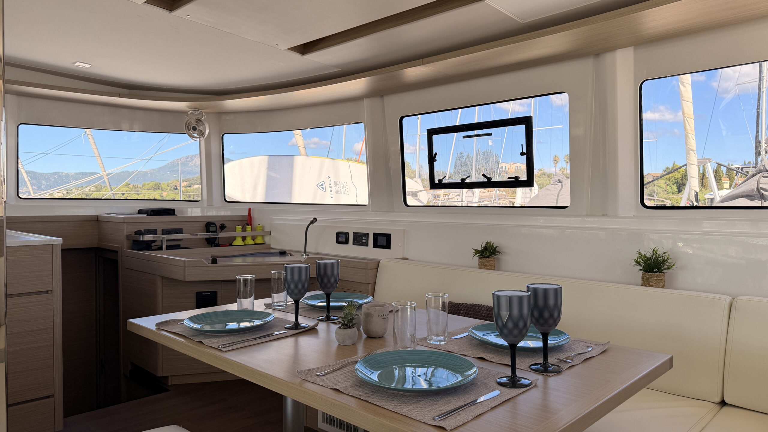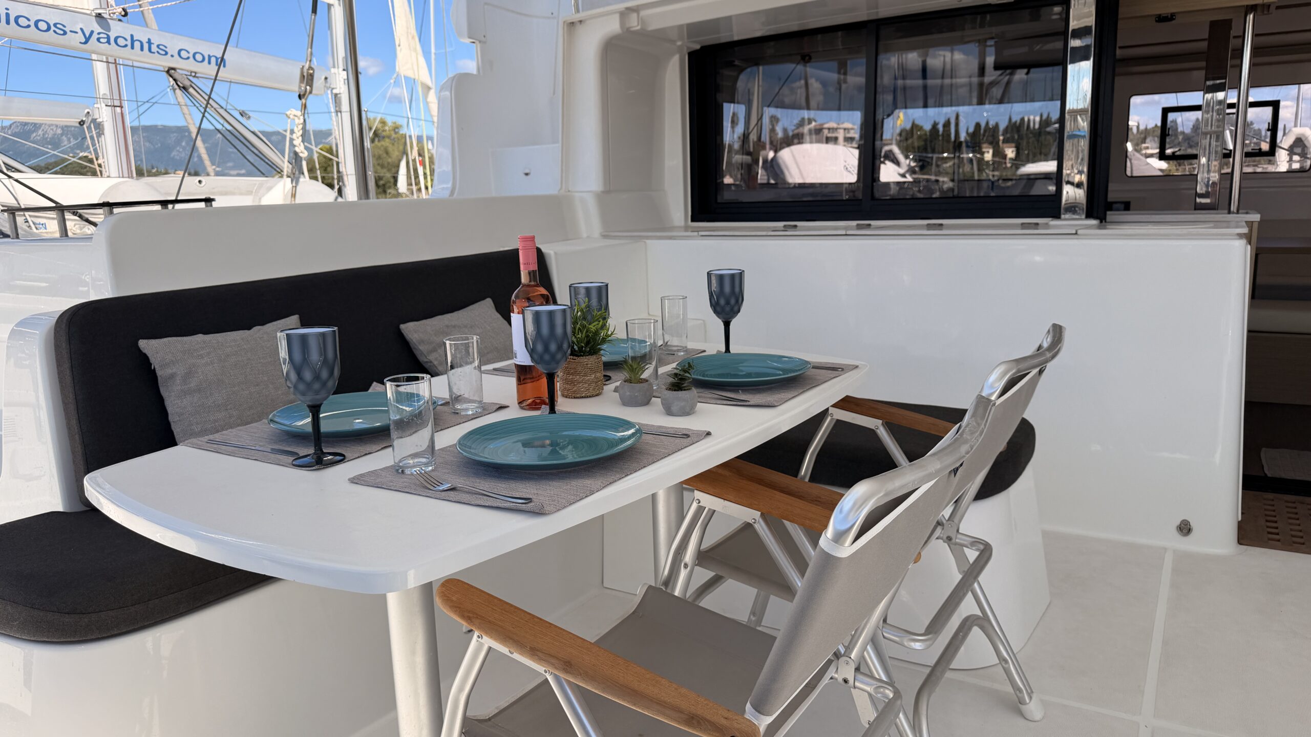 This Lagoon 46 is a 4 cabin catamaran built in 2025 and she is docked in D-Marin Marina Gouvia, Greece.