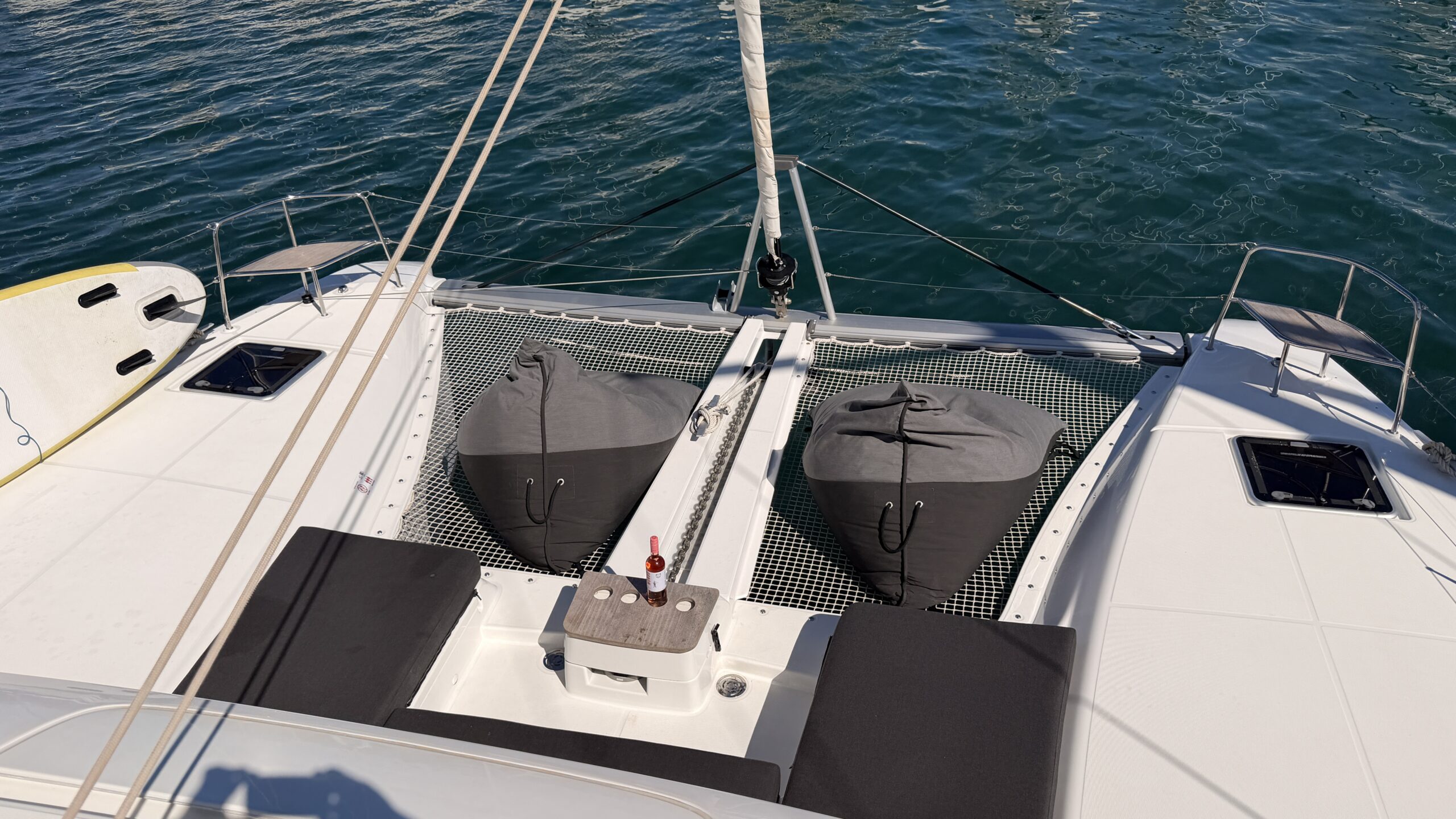 The Lagoon 46 can accommodate up to 12 guests in 4 cabins + 2 and has 4 toilets.