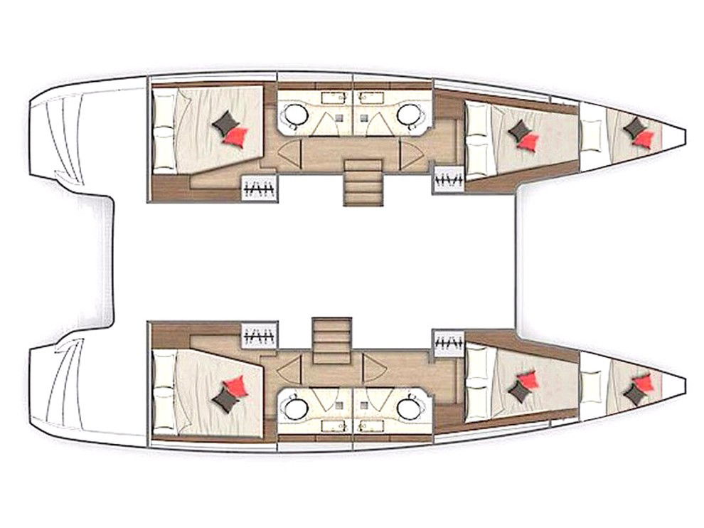 The Lagoon 40 can accommodate up to 10 guests in 4 cabins +2 and has 4 toilets.